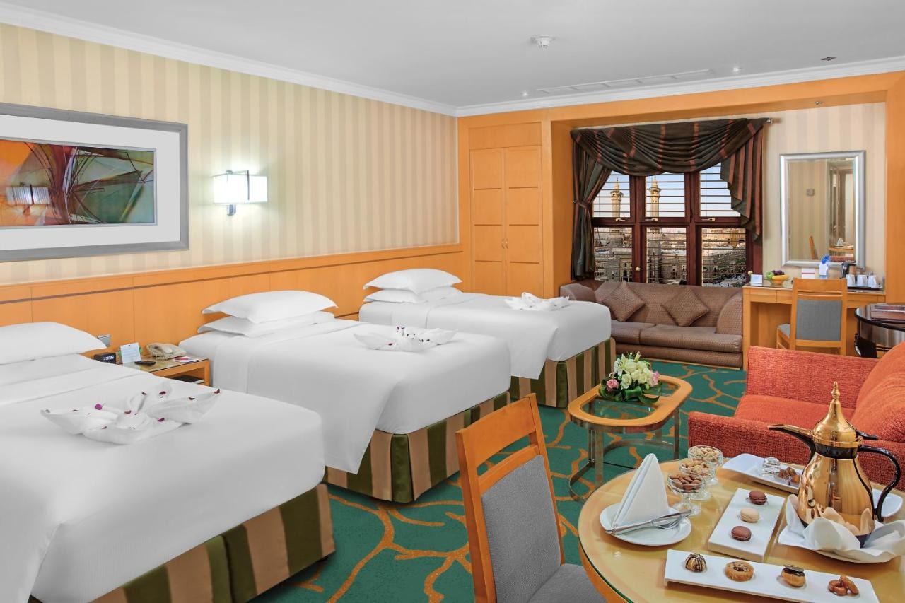 Mekke’de hizmet veren 5 yıldızlı Makkah Towers, Mescid-i Haram ve Kabe’ye bakmaktadır.
