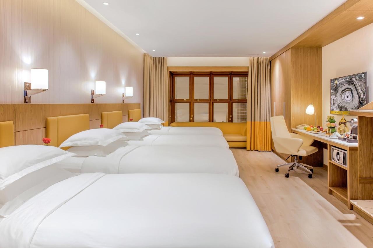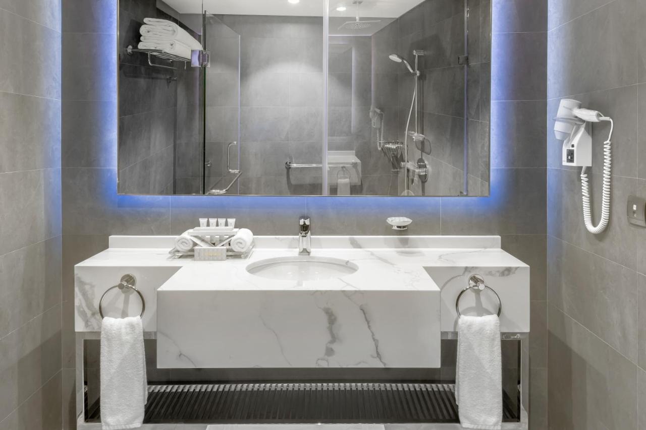 Tesis şık odalar, 7 yemek mekanı seçeneği ve 10.000 kişilik halı kaplı bir ibadet alanı sunar.